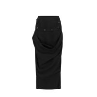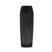 - 100WW_BUS-S24 Detachable woman's black asymmetrical long straight skirt-2026SS