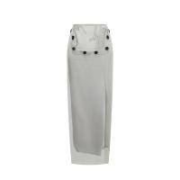 - 100WW_BUS-S22 Detachable woman's grey polyester long straight skirt-2026SS