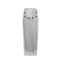 - 100WW_BUS-S21 Detachable woman's grey polyester mix color long straight skirt-2026SS