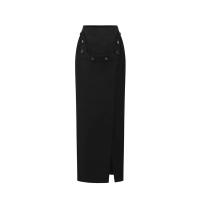 - 100WW_BUS-S22 Detachable woman's black long straight skirt-2026SS