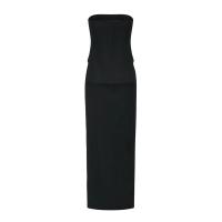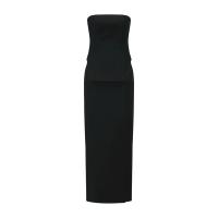 Detachable woman's black bustier & skirt set, consisting of the main part BUS-B2 (10) and the auxiliary part BUS-S22 (100) in the BUSDR1 system. All parts in the BUSDR1 system can be combined with one another through zippers and buttons. It adopts a slim fit design; wool fabric or polyester fabric is available as an option.