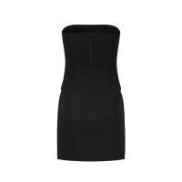 Detachable woman's black bustier & skirt set, consisting of the main part BUS-B2 (10) and the auxiliary part BUS-S19 (100) in the BUSDR1 system. All parts in the BUSDR1 system can be combined with one another through zippers and buttons. It adopts a slim fit design; wool fabric or polyester fabric is available as an option.