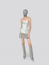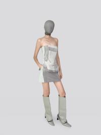 The detachable woman's polyester printed bustier and skirt set is composed of the main component BUS-B2 (10) and the secondary component BUS-S19 (100) from the BUSDR1 system; all components in the BUSDR1 system can be combined with one another via zippers and buttons. It features a tailored slim fit, with a digital printed pattern design on the main body, and is made of high-quality polyester fabric.
