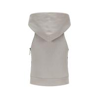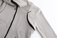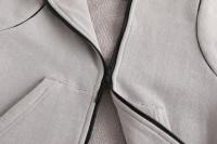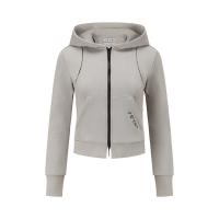 Detachable women's grey slim-fit frayed-edge hoodie, composed of the main part TH-B5 (10) and the secondary part TH-S4 (100) from the TH2 system; all parts in the TH2 system are interchangeable and combinable. It features a slim fit cut, YKK two-way zipper, frayed lapped side seams, detachable sleeves via zippers, exquisite embroidery, and is made of high-quality pure cotton fabric.