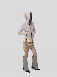 Detachable women's grey slim-fit frayed-edge hoody sleeves attachment-2026SS